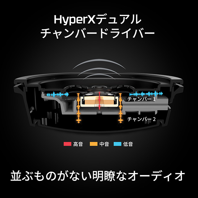 HyperXの画期的なデュアルチャンバーシステムは中高音と低音の分離設計により、最高にクリアなサウンドをお届けします。