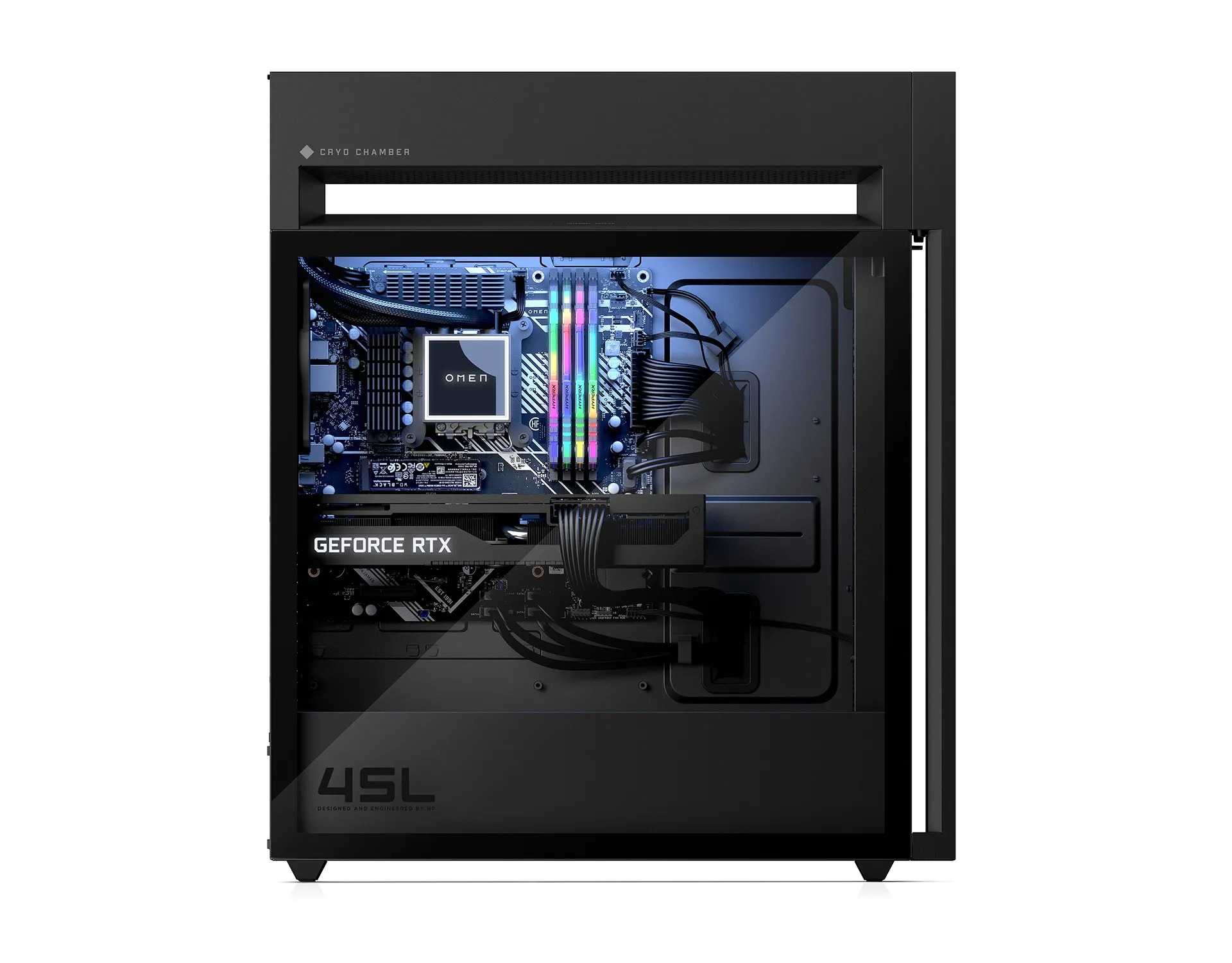 高級感と美しさを感じさせる外観。フルメタルフレームで覆われたシャーシはツールレスでアクセス可能、EMコーティングされた強化ガラスのパネル越しには黒で統一されたパーツやケーブリング、最大3つのRGBゾーンと1つのARGBゾーンで照らされたコンポーネントが確認できます。
